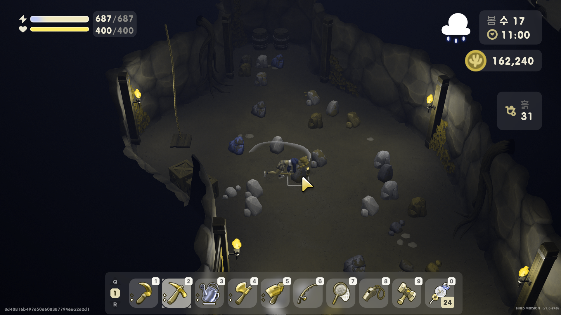 코랄아일랜드도, 스타듀밸리와 마찬가지로, 동굴에 들어가 광석을 캡니다.